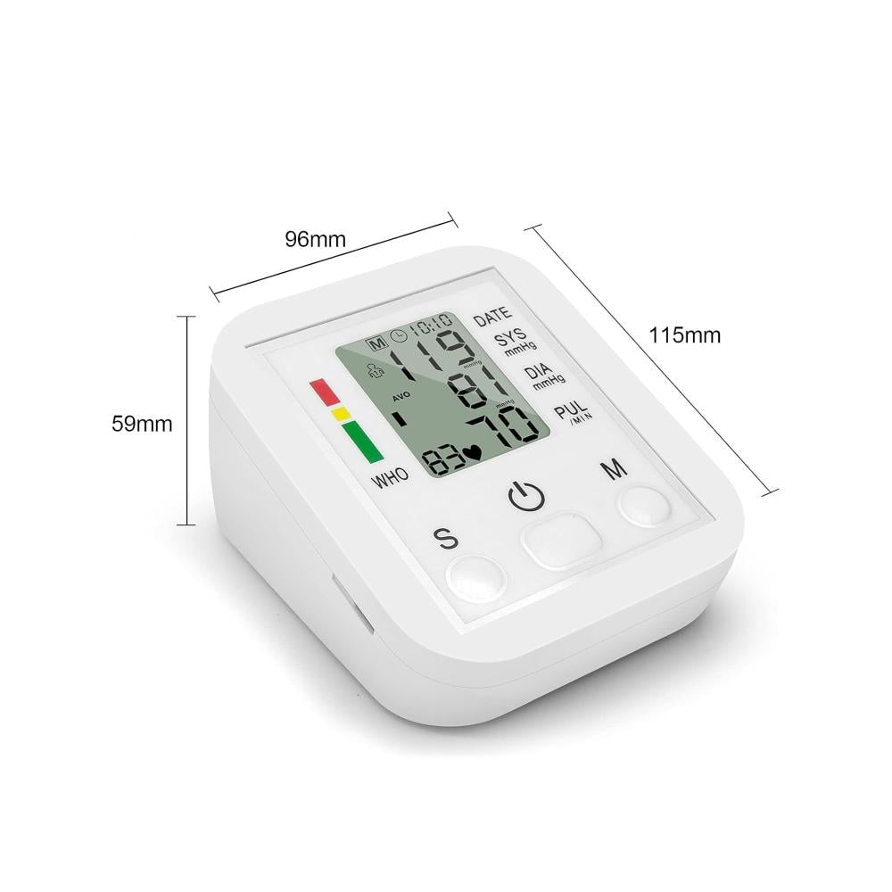 • شاشة LCD واضحة تعرض ضغط الدم الانقباضي والانبساطي ومعدل النبض بشكل كبير وسهل القراءة